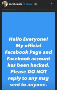 या स्टोरीनंतर त्याने अजून एक स्टोरी पोस्ट करत त्यात आपल्या फेसबुक पेजचा स्क्रीनशॉट पोस्ट केला आहे. या स्क्रीनशॉट वर हॅकड असे लिहिले आहे.